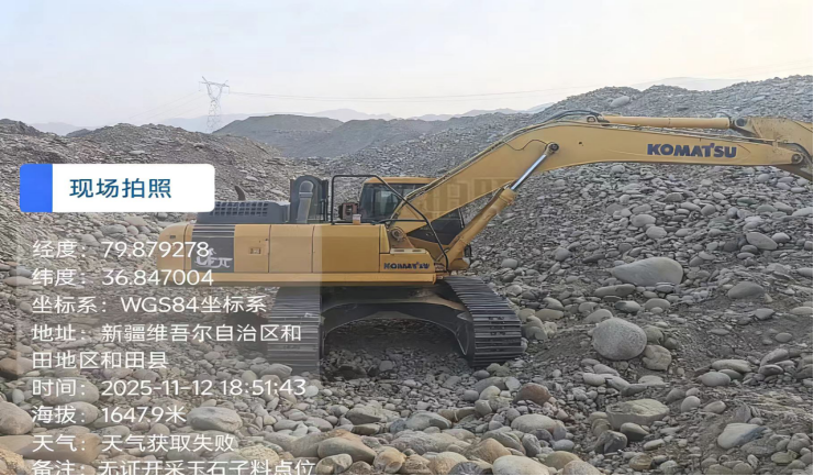 【扣押原因】该挖掘机涉嫌无证采挖子玉资源,且未发现任何有效合法信息,根据《中华人民共和国矿产资源法》和《中华人民共和国行政处罚法》第五十六条规定,和田县自然资源局决定对该挖掘机进行扣押。